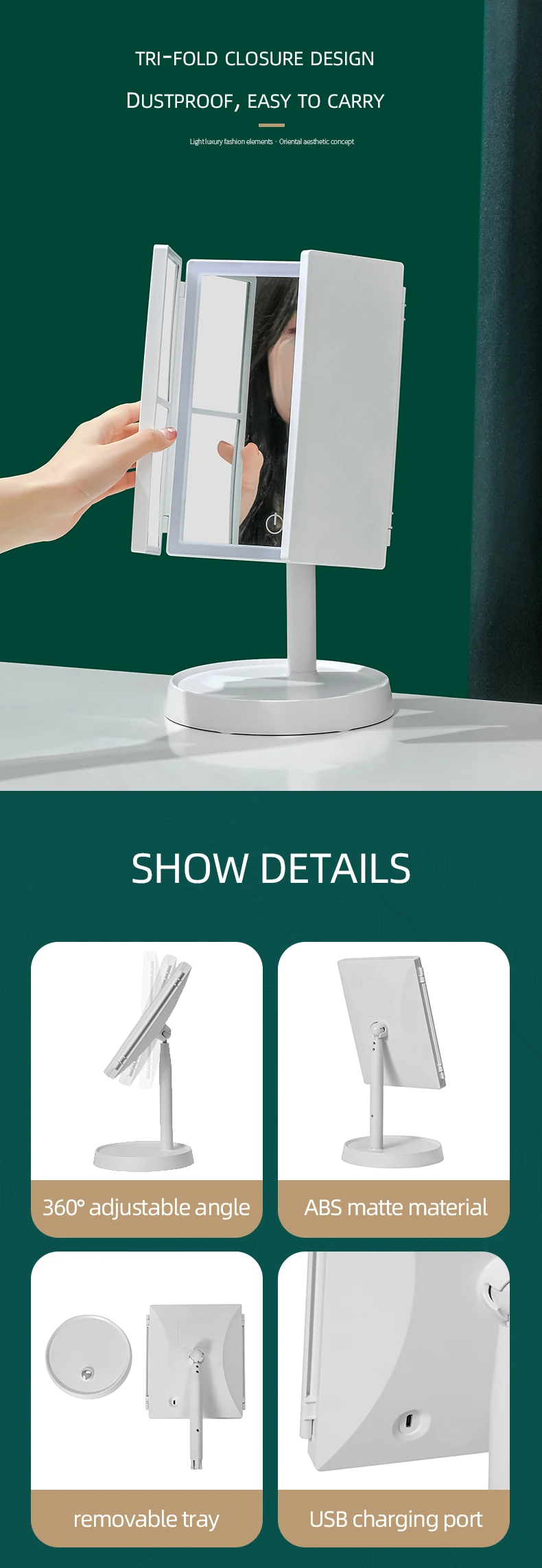 - Rotation à 360°, permettant une vue sous tous les angles pour un maquillage parfait.